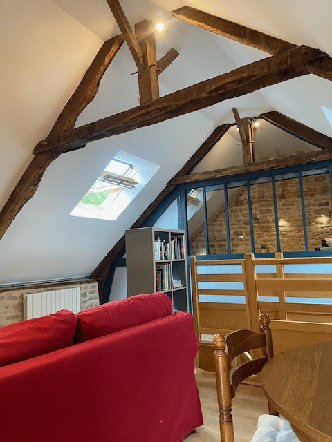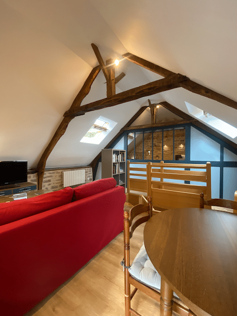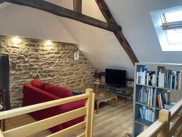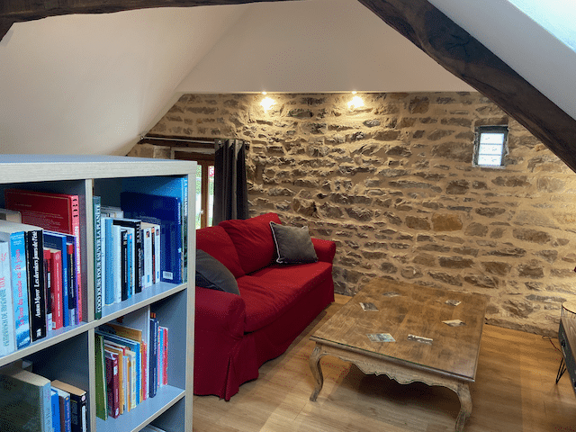 - Un grand salon avec télévision, une bibliothèque, des jeux de société, à l’étage.